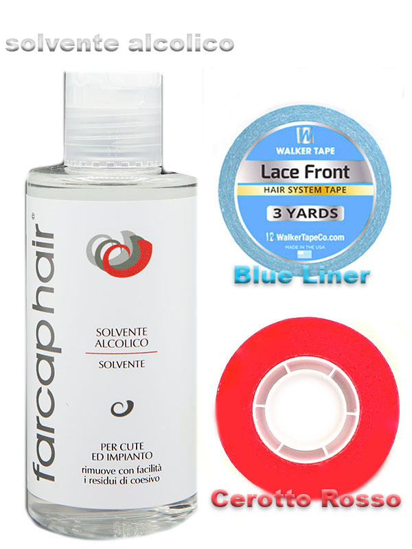 Kit Basic protesi capelli con sconto composto da Solvente alcolico adesivo rosso e cerotto blu