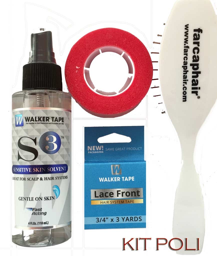 Kit per protesi capelli Adesivo blu+ adesivo rosso + spazzola + solvente S3 Un magnifico kit di manutenzione per chi indossa impianti capillari protesici in poli o lace.