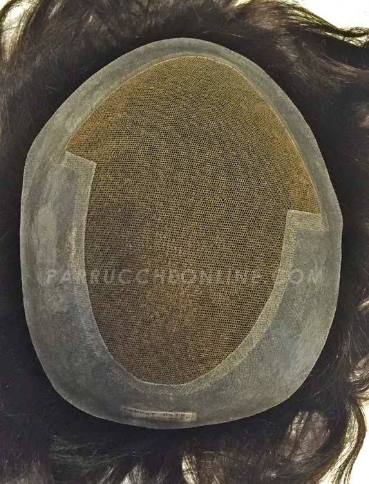 Protesi capillare interamente lavorata a mano con un bordo in poli leggero tutto perimetralmente di 5 cm. e un lace svizzero centrale per la traspirazione, il quale fornisce un ottimale effetto pelle.