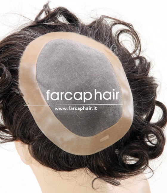 Lavorazione interamente a mano con micronodo doppio. Viene utilizzato un capello di ottima qualità. Ha perimetralmente una membrana plastificata per poter applicare l’adesivo o il collante.