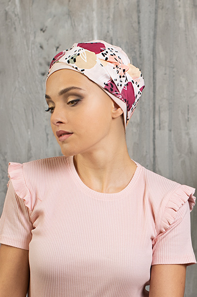 Un turbante molto particolare dotato di una cuffiettina prestabilità in bambù al 100%, con integrata una fascetta molto leggera ed elegante in misto seta, per creare volume sulla parte superiore.