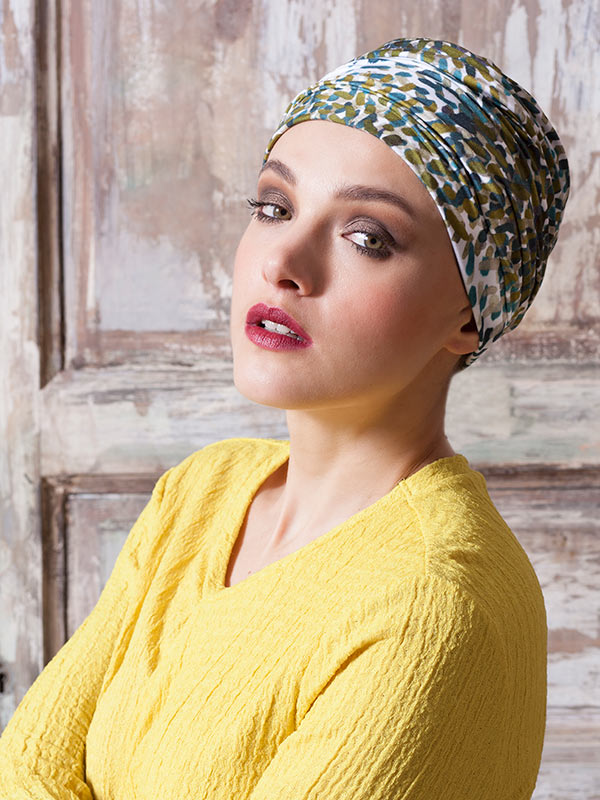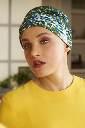 Turbante dalla fantasia verde con calzata aderente e avvolgente, è comodo e veloce da indossare ma soprattutto un piacere averlo in testa.