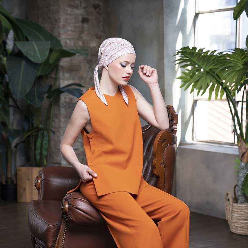 Turbante Scarlett a bande lunghe in bamboo dai colori neutri del beige per indossarlo con qualsiasi tipo di abbigliamento.