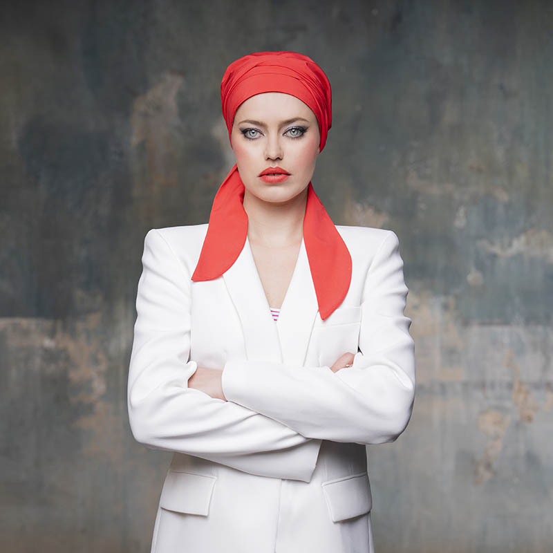 Turbante Tessa a bande lunghe in misto seta , super leggero per la tua calda estate.