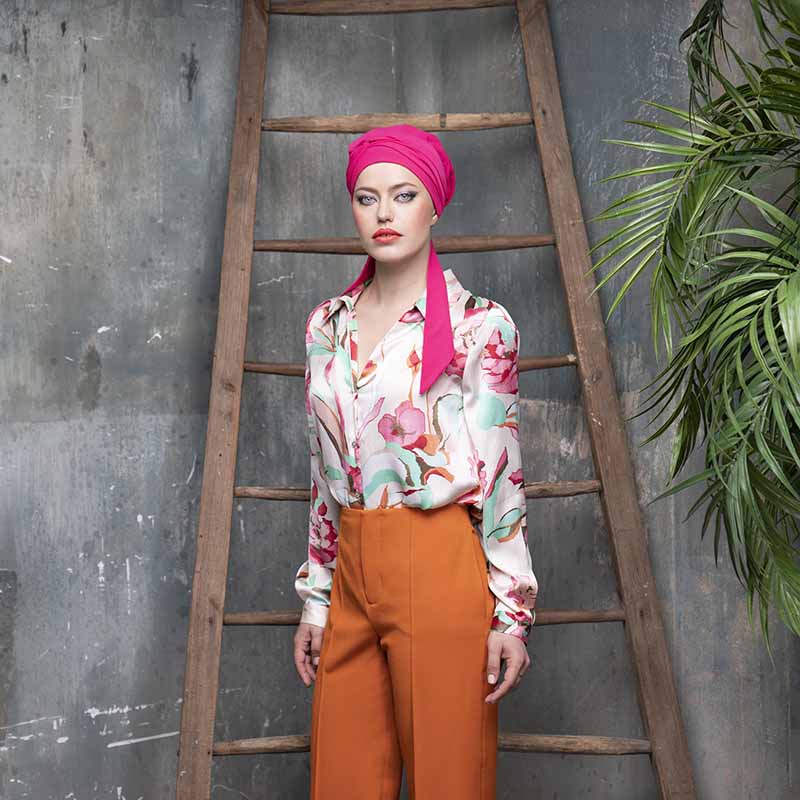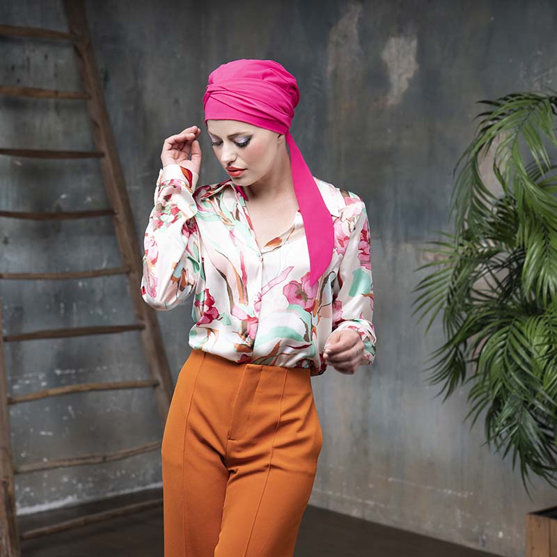 Turbante Tessa a bande lunghe in misto seta , super leggero per la tua calda estate.